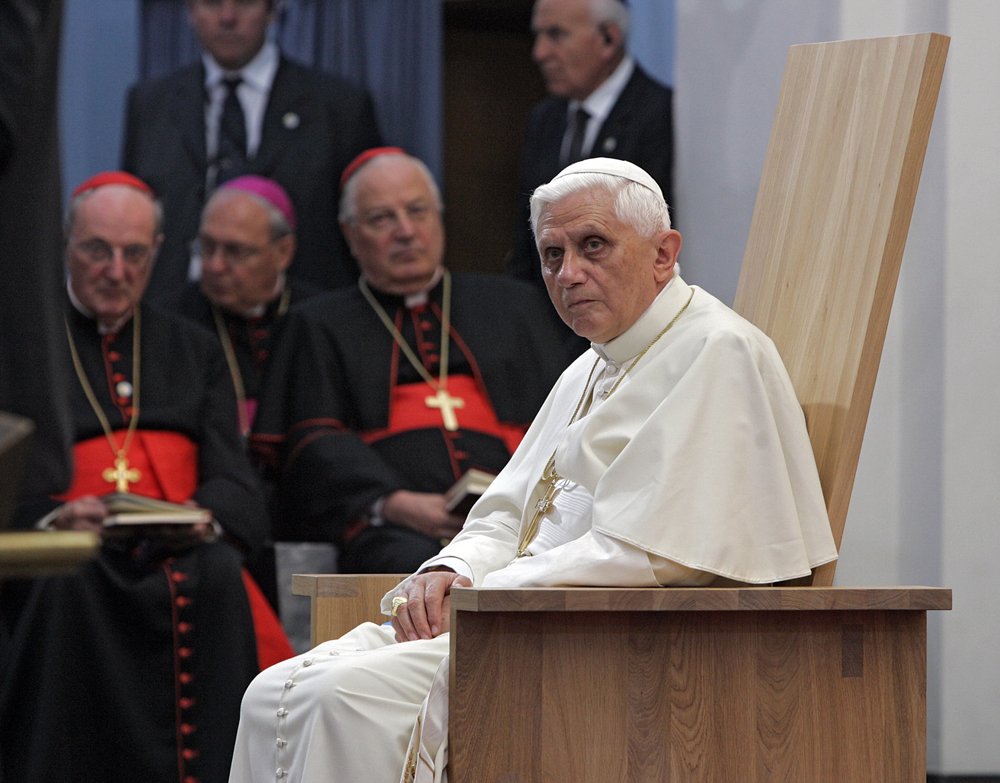 Für den Besuch von Papst Benedikt XVI. in der Synagogen-Gemeinde Köln anlässlich des Weltjugendtags 2005 wurden in unserer Schreinerei zwei baugleiche "Thron"-Stühle gefertigt. Einen Stuhl für den hohen Gast aus Rom und einen für den gastgebenden Rabbiner. Wir haben die Stühle - schlicht und modern, aber in perfekter ergonomischer Form - aus gut abgelagerter massiver Eiche hergestellt. Die Oberfläche ist geölt, mit weißem Pigmentanteil. Die Maße sind 138,5 x 82 x 71 cm (HxBxT).