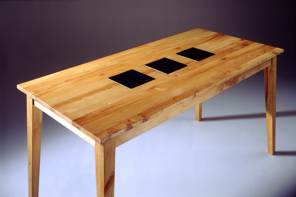 Topf auf den Tisch! Bei diesem Modell in Erle kein Problem, Abstellplatten für heiße Töpfe und ein Rechaud sind integriert!