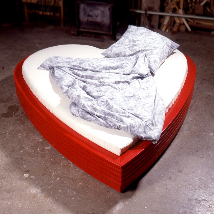 Lesen, liegen, lieben nach Herzenslust. In einem Bett aus liebesrotlackierter MDF.