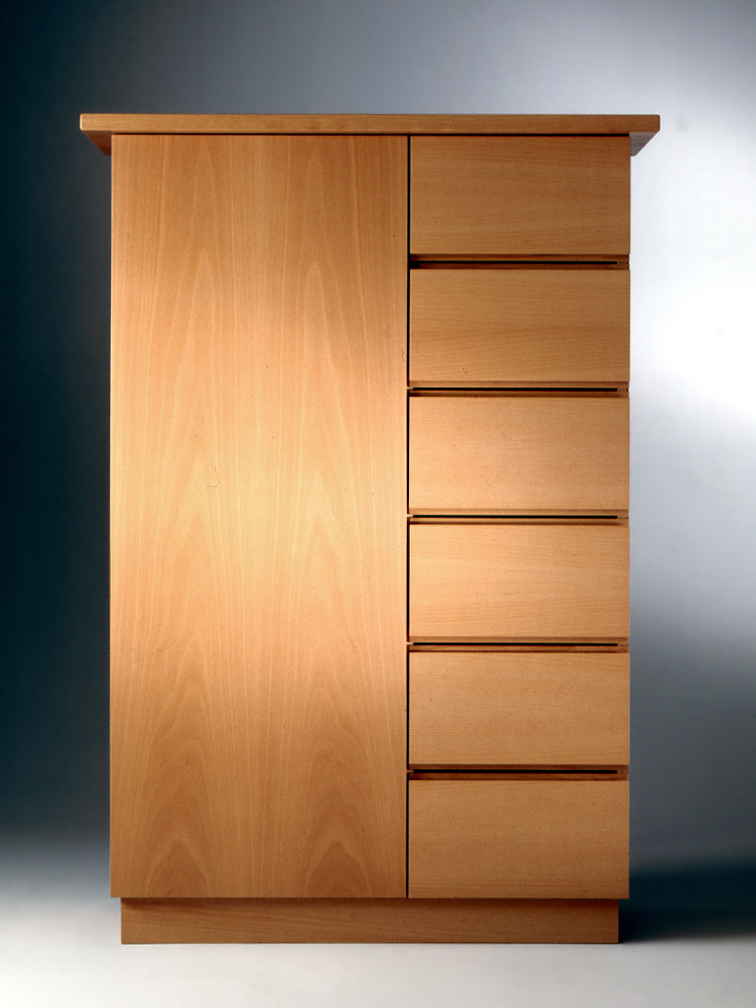 Gehen Sie mal ganz nah ran: Hier spielt die Musik, hinter diesen Türen. Musikschrank aus furnierter Buche.