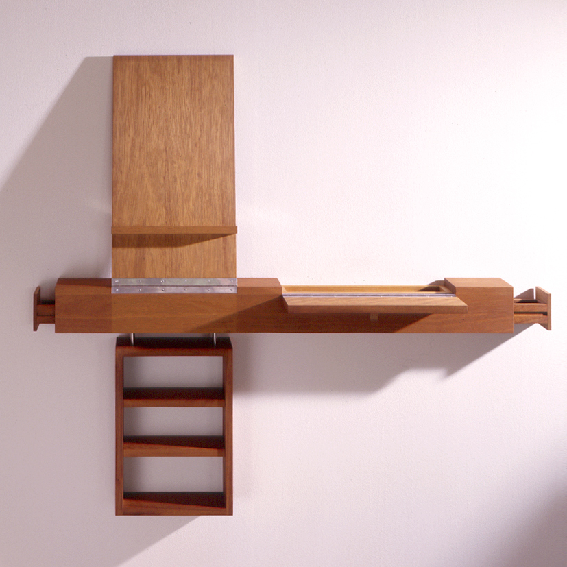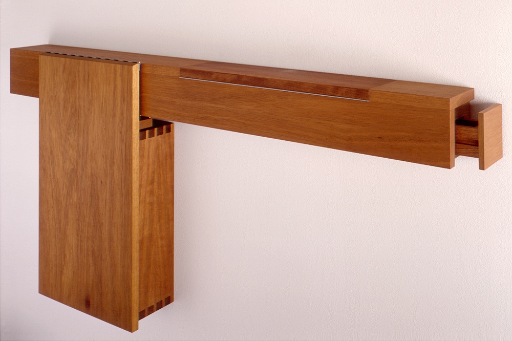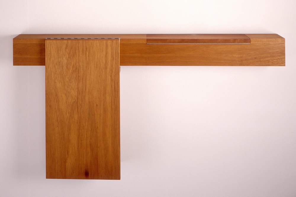 Klappe, die erste: ein Sideboard aus Kambala, dass sich zur Staffellei ausklappen lässt.