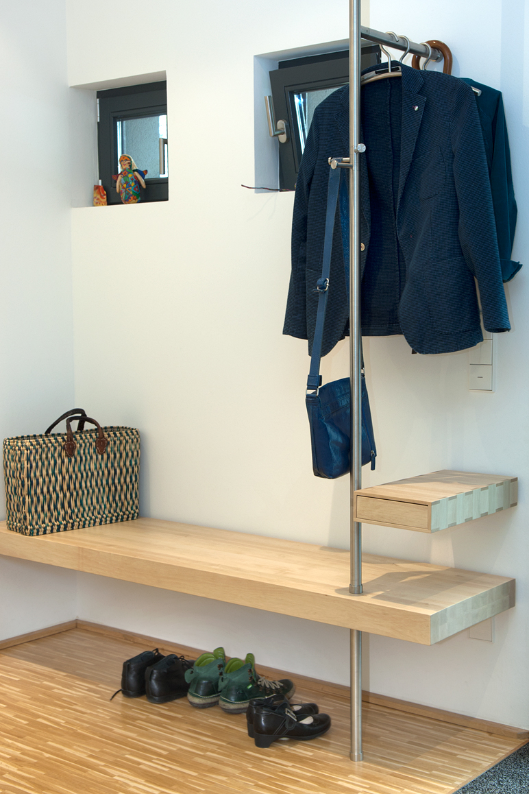 Die Garderobe unter den Schränken, Hainbuche massiv