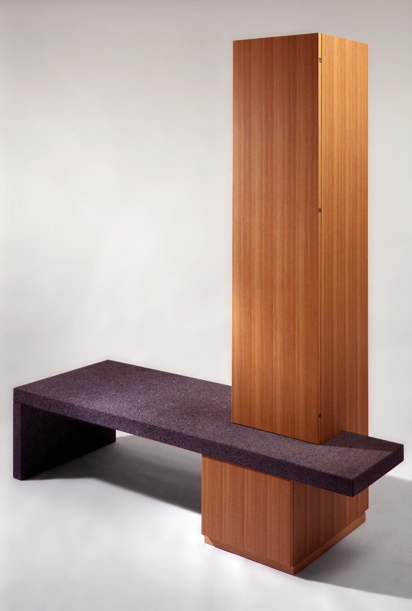 Schrankbank oder Bankschrank? Das ist Ansichtssache! Horizontal sehen Sie Basaltino, vertikal Lärche.
