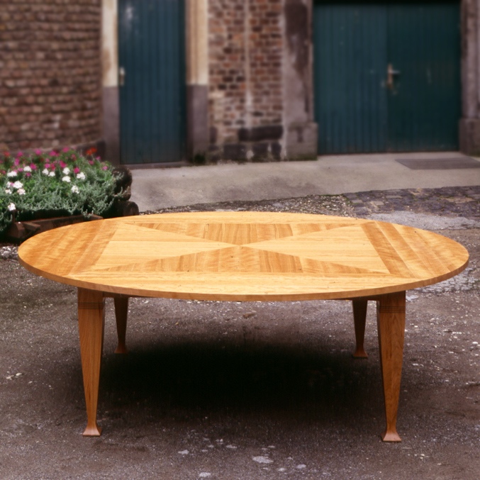 Die Quadratur des Kreises: Wir beherrschen sie. Mit runden Ecken hat die ganze Familie an dem Kirschbaumholz-Tisch Platz!